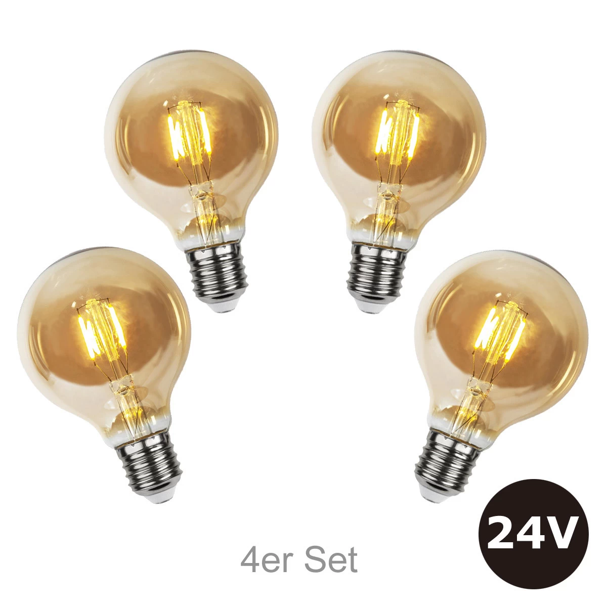 4er Set – 24V Leuchtmittel – 8cm – amber – 28lm – 2500K – E27 Sockel – Niedervoltleuchtmittel