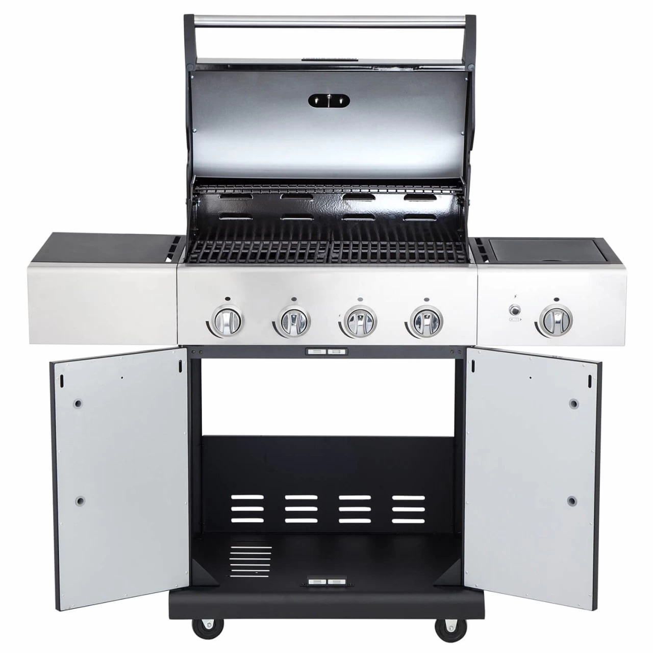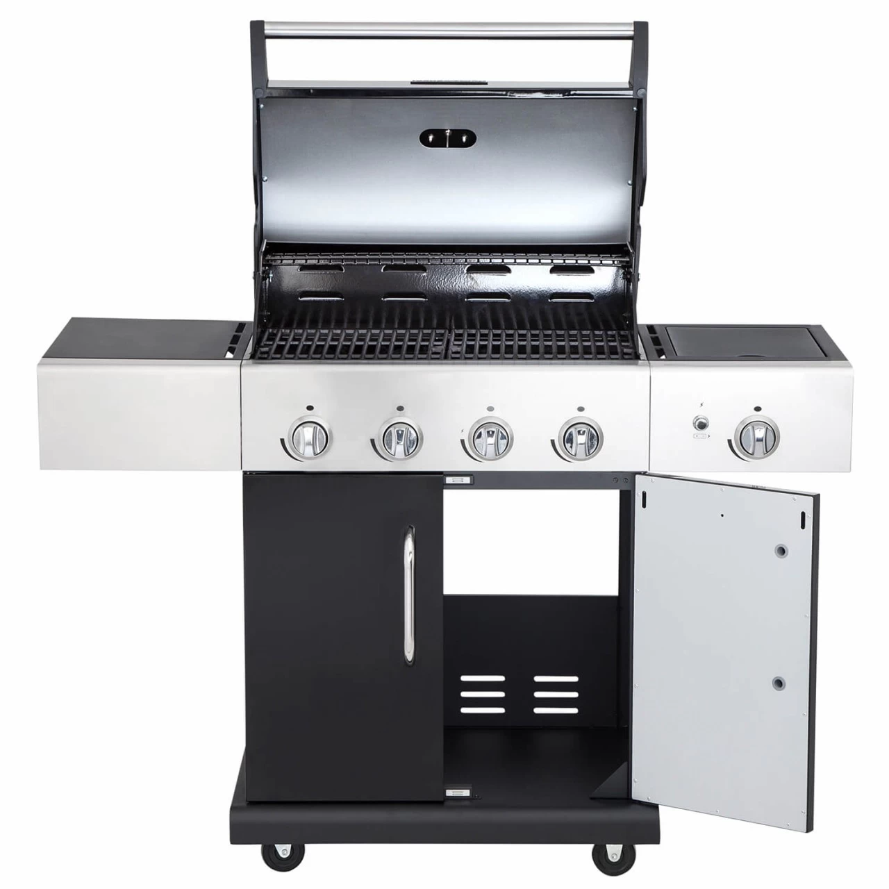 - 4 Brenner je 3,5 kW + Steakzone®-Keramikbrenner (bis 750° C) mit 3,5 kW porzellanemailliert