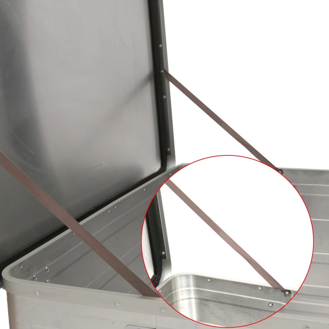 Aluminium ist ein langlebiger Werkstoff ohne nennenswerte Korrosion. So lassen sich die Kisten auch in feuchter Umgebung verwenden. Die umlaufende Moosgummidichtung schützt zusätzlich vor Wasser von oben.