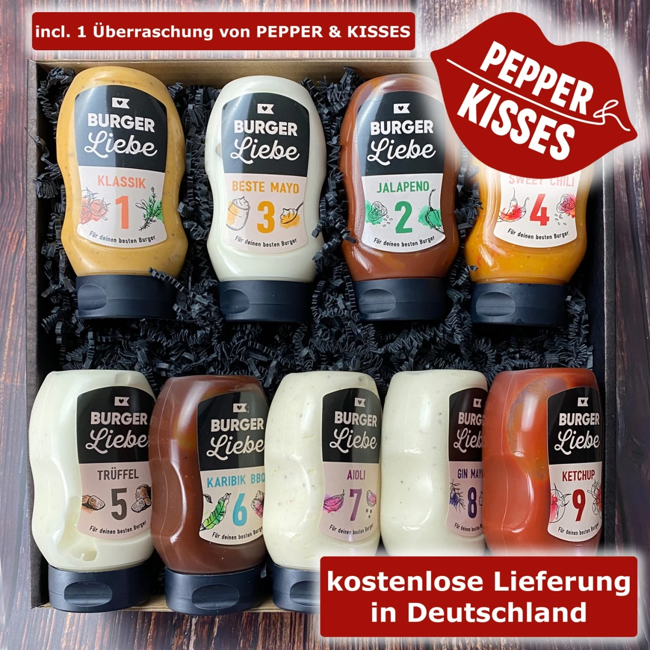Oben drauf packen wir noch ein Küsschen in Form einer Extra Flasche von Pepper&Kisses – Für echte Schleckermäulchen 🙂
