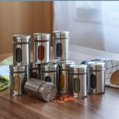 Gewürzstreuer – Edelstahl – Sichtfenster – 3 Streumöglichkeiten – D: 5cm – H: 8cm – 5er Set