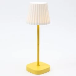 LED Garten Tischlampe – Weißer Lampenschirm – 2 Helligkeitsstufen – H: 34cm – USB – Für Außen – Gelb
