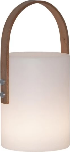 LED Garten Tischlampe – Weißer Lampenschirm – 2 Helligkeitsstufen – H: 34cm – USB – F. Außen – Braun