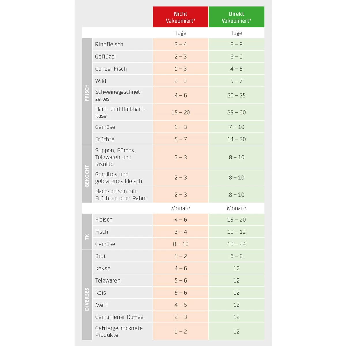 Nutze das Angebot aus und portioniere und vakuumiere, z.B. frisches Fleisch oder Obst und spare somit bares Geld und Zeit. Einfach ideal für die Portionierung und lange Lagerung von Lebensmitteln oder das Kochen à la Sous Vide.