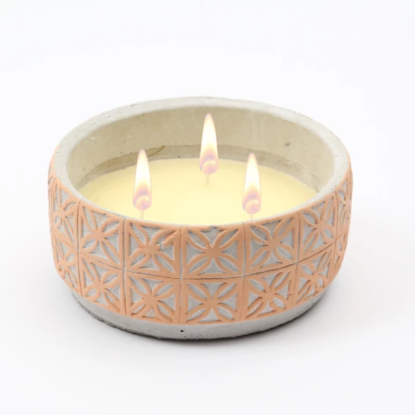 Duftkerze CITRONELLA – Echtwachs in Tonschale – 3 Dochte – rosa