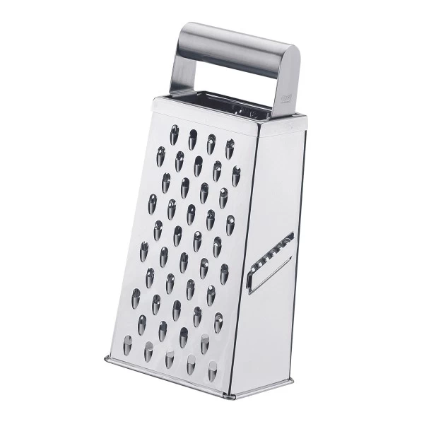 Mit dieser Multireibe aus hochwertigem Edelstahl wirst Du lange Freude haben. Die 4 Seiten haben jeweils unterschiedliche Muster. Die Klingen sind beidseitig geschliffen, so dass Du in beide Richtungen schneiden kannst.