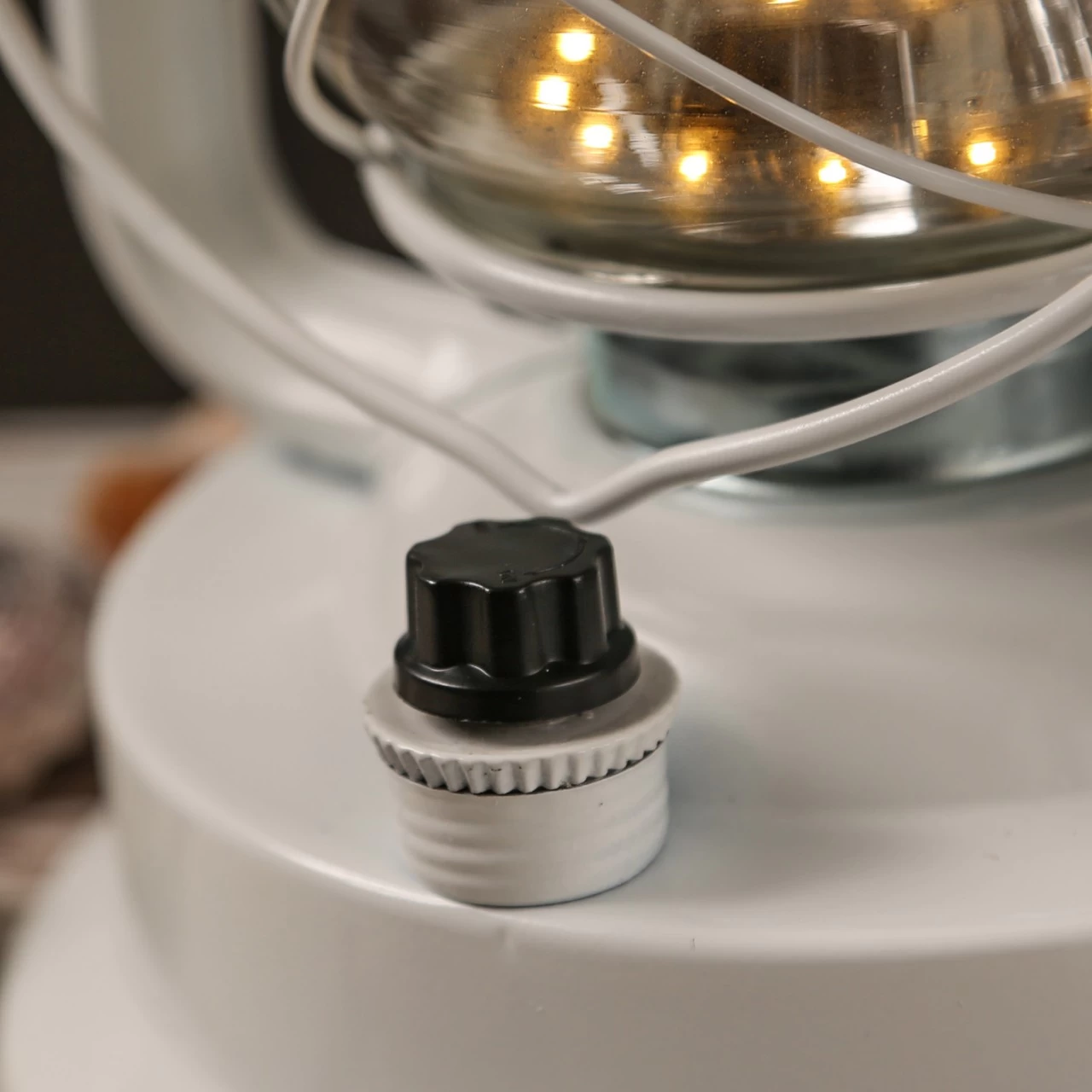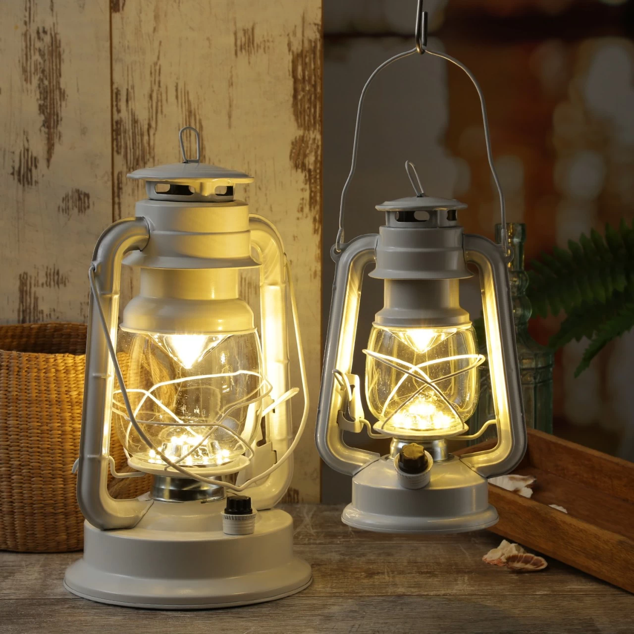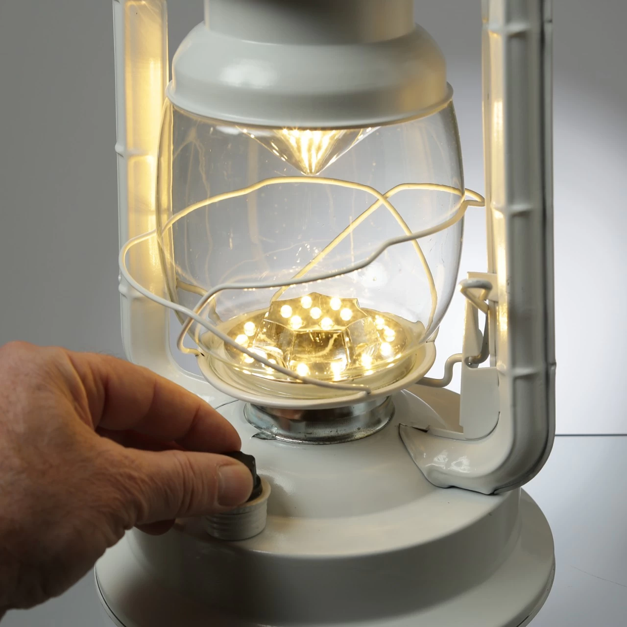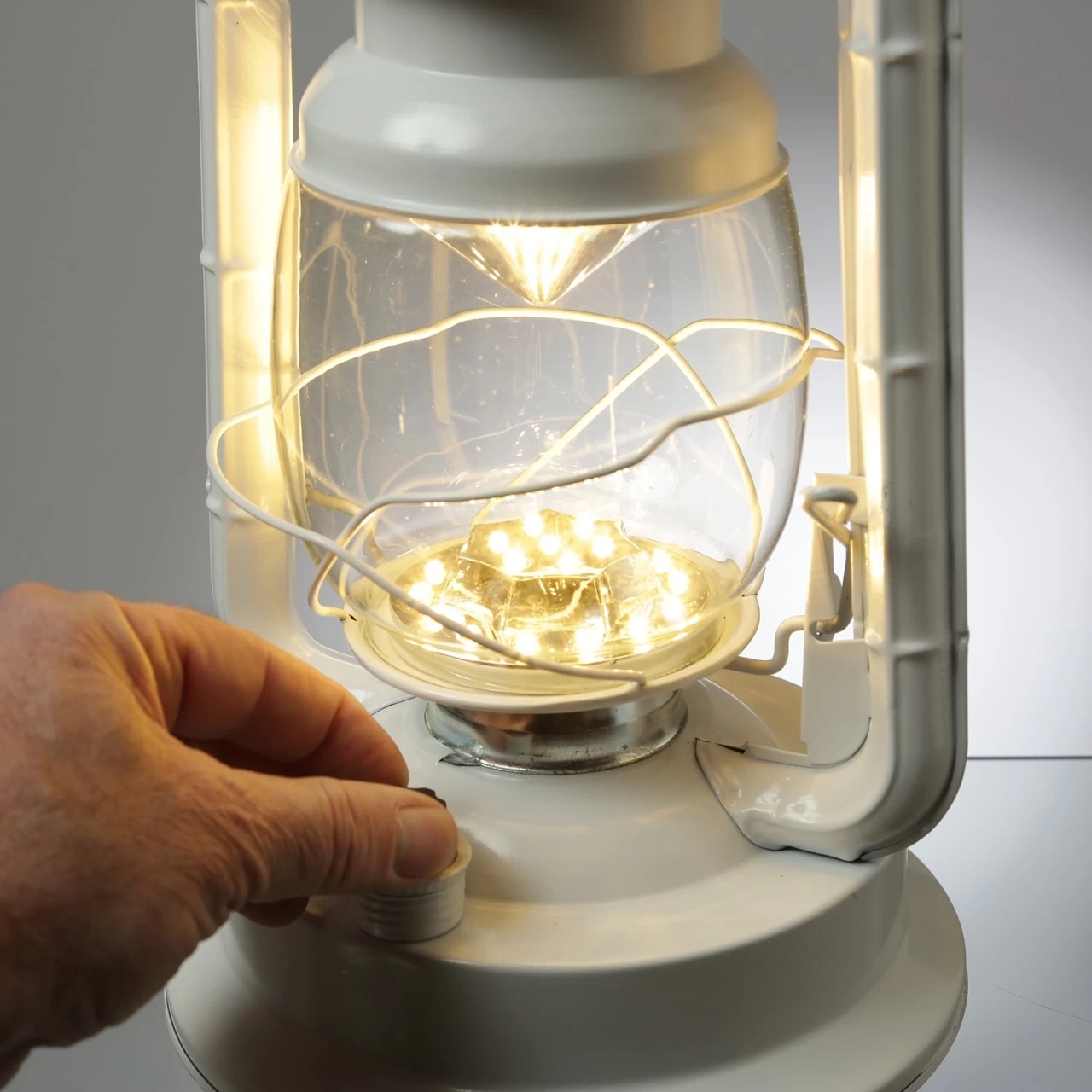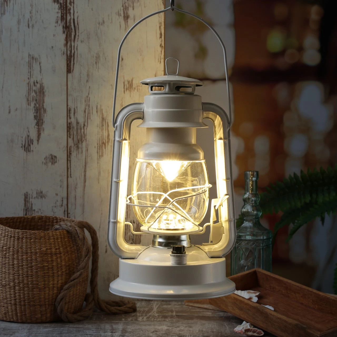 Auch wenn es draußen nicht stürmt, ist diese dekorative weiße LED Sturmlaterne eine tolle Beleuchtung. Durch den vorne angebrachten Regelknopf kann die Helligkeit der 21 warmweißen LED eingestellt werden. Genau richtig im Wintergarten, auf Deiner überdachten Terrasse oder Deinem überdachten Balkon.