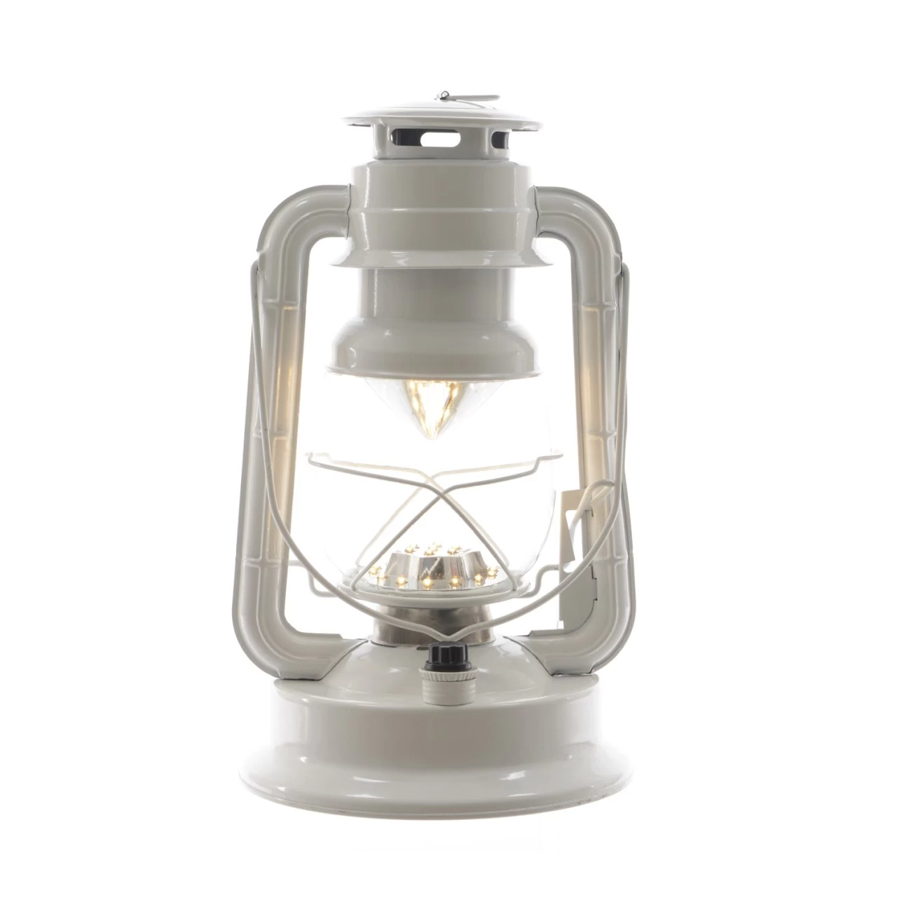 LED Sturmlaterne – 21 warmweiße LED – dimmbar – Metall – Batteriebetrieb – H: 34cm – weiß