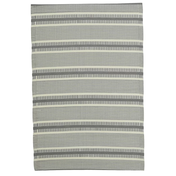Das Material aus 100% Polypropylen überzeugt durch seine Langlebigkeit und seine Formbeständigkeit. Der grau-weiße gestreifte Teppich ist wasser- und schmutzabweisend. So kannst Du den Teppich jederzeit abfegen oder mit dem Gartenschlauch abspritzen. Der hohe UV Schutz schützt den Outdoor Teppich vor den Sonnenstrahlen.