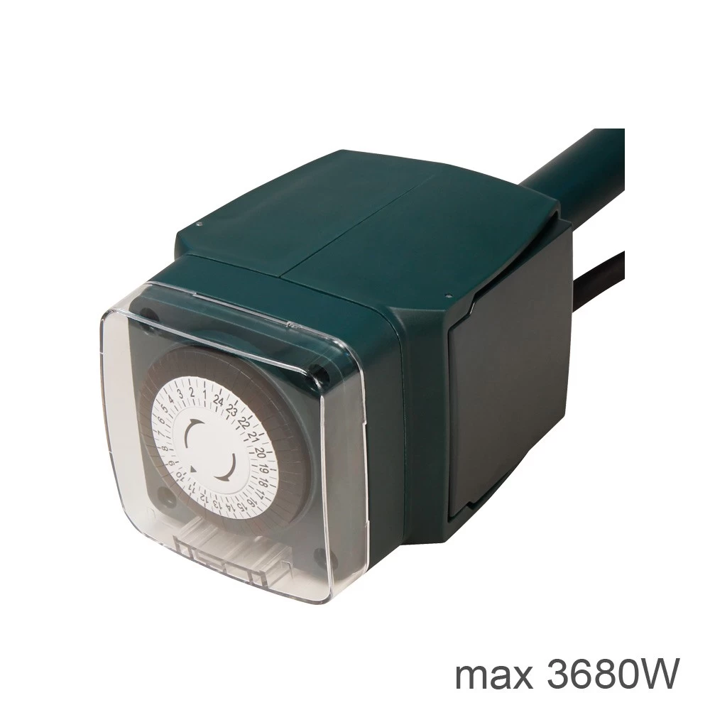 Gartensteckdose mit mechanischer Tages Zeitschaltuhr (24h, 30min Abstände, max 3680W)