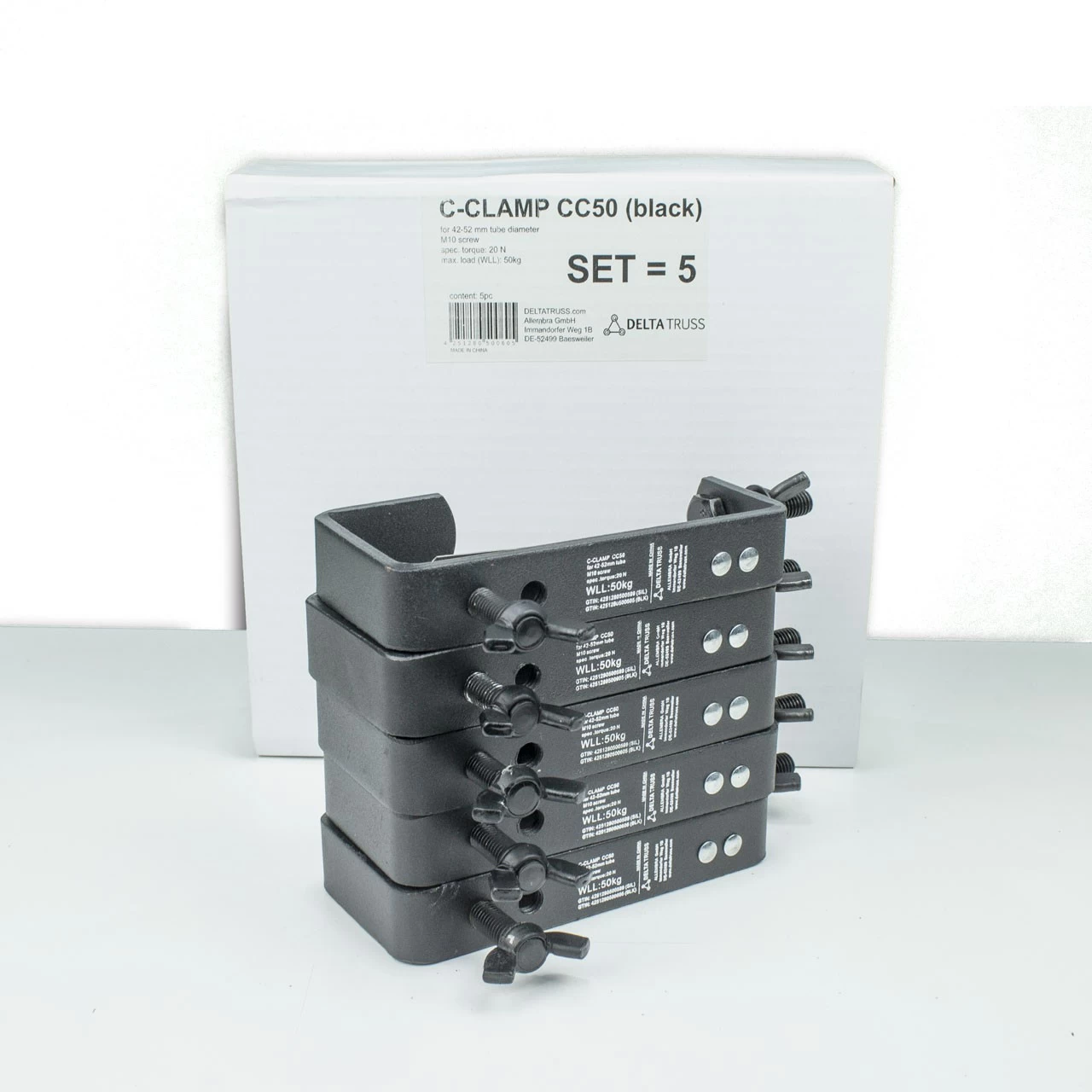 Die CC-50 Theaterhaken sind hochwertige Befestigungswerkzeuge für Geräte bis zu einem Gewicht von 50kg (WWL).
