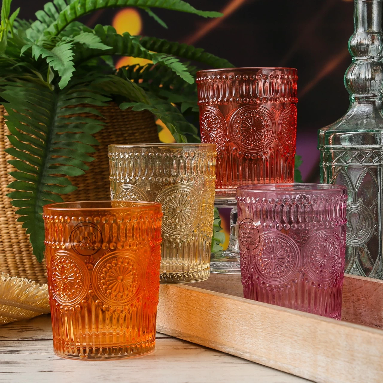 Mit dem 4er Set Trinkgläser Vintage zauberst Du einen absoluten Blickfang auf jeden Tisch! Ob für den täglichen Gebrauch, auf einer Party, Deiner Hochzeit oder einer anderen Feierlichkeit, die rosa/roten Gläser mit dem Blumenmuster sehen total klasse aus.