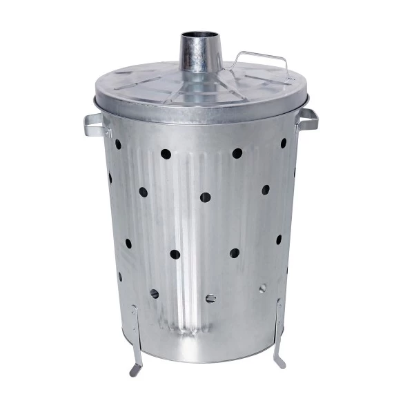 Verbrennungstonne verzinkt – 75 Liter – D: 44cm – H: 71,5cm – Deckel, Griffe und Füße