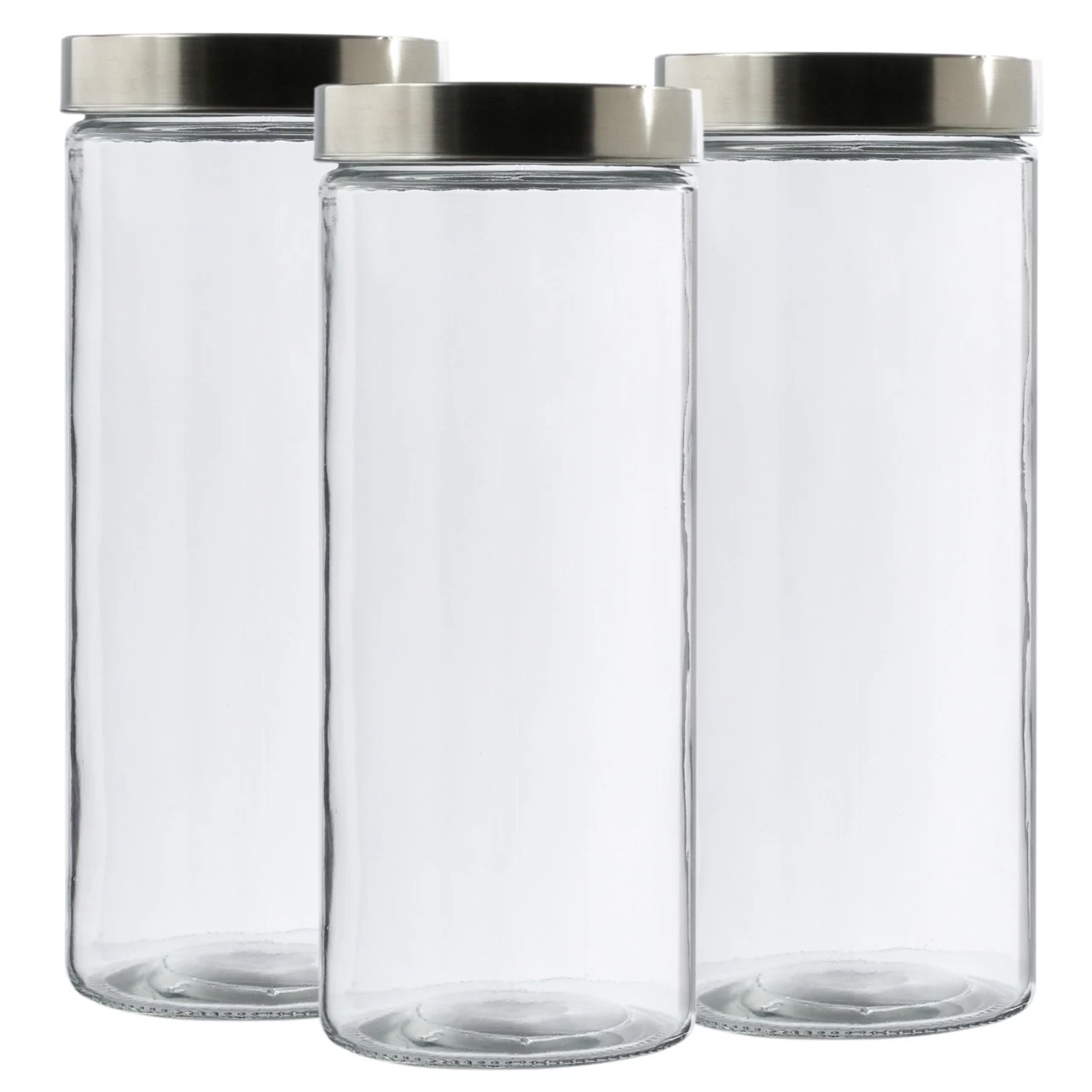 Vorratsdose XL – Glas mit Edelstahldeckel – 2,2 Liter – D: 11cm – H: 27cm – 3er Set