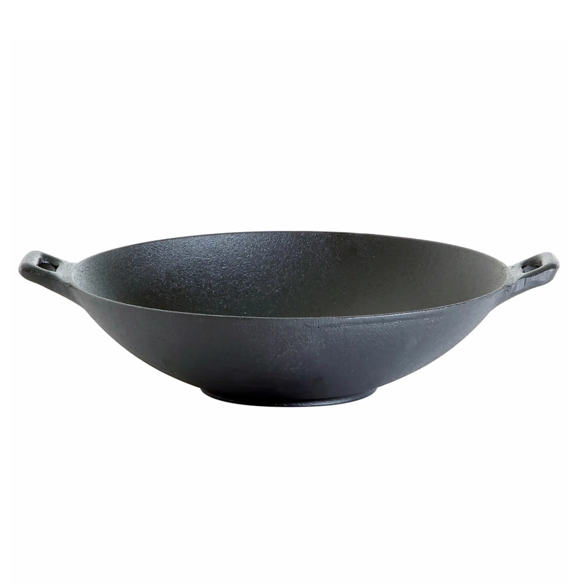 Wok aus Gusseisen – Wokpfanne mit 2 Griffen – D: 25cm