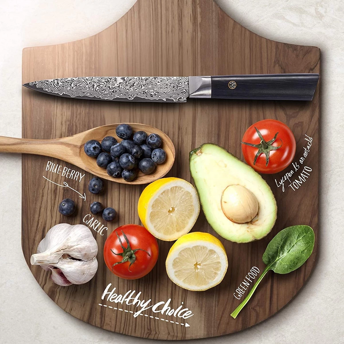 - Bitte schneide keine harten Materialien wie Knochen, oder gefrorene Lebensmittel. Damaststahl ist härter als Walzstahl und somit auf bruchempfindlicher