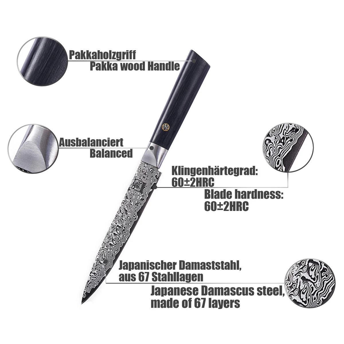 - Klingen-Härtegrad: 60+/-2HRC