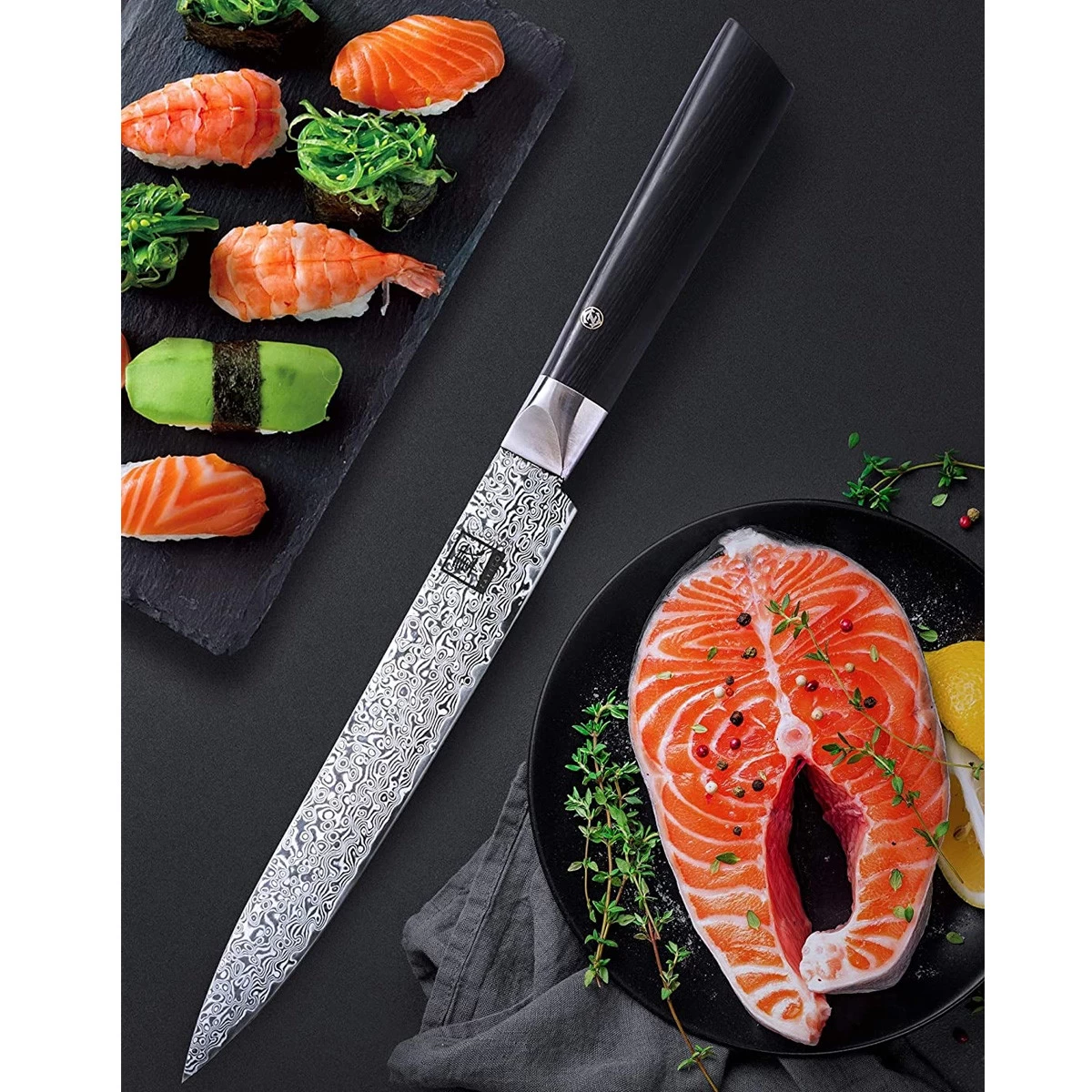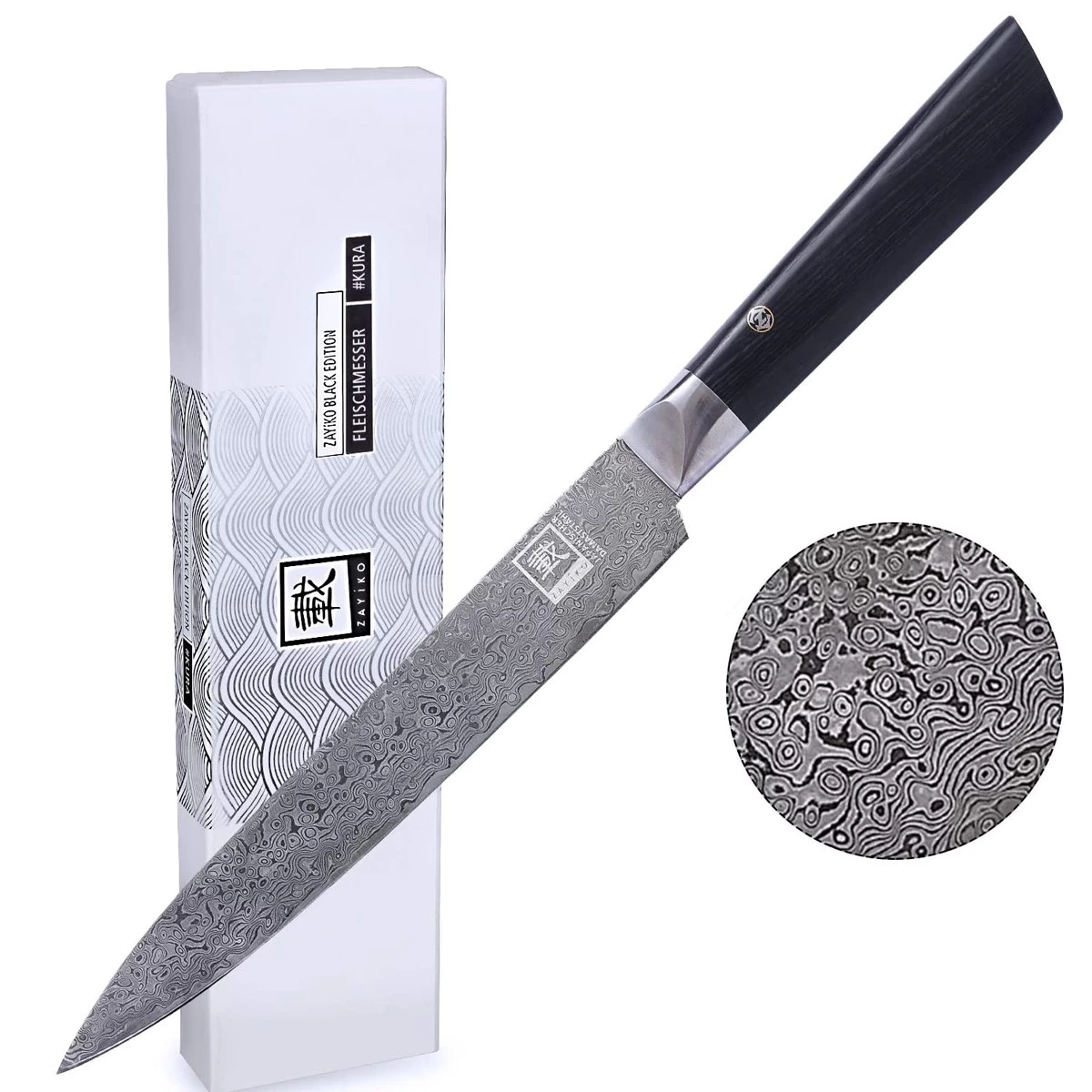 ZAYIKO Damastmesser BLACK EDITION „Fleischmesser“ – Pakkaholz – VG-10 Stahlkern