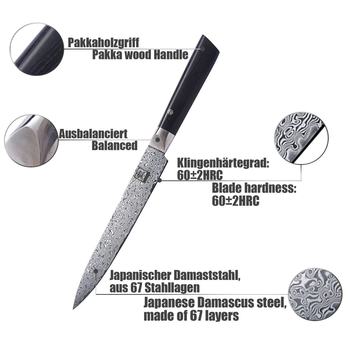 - Griff Material: schwarzes Pakkaholz