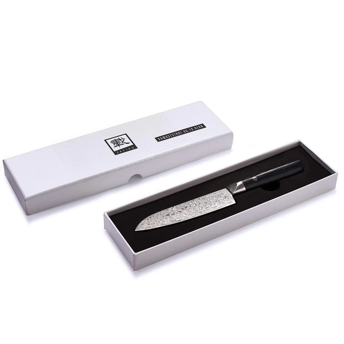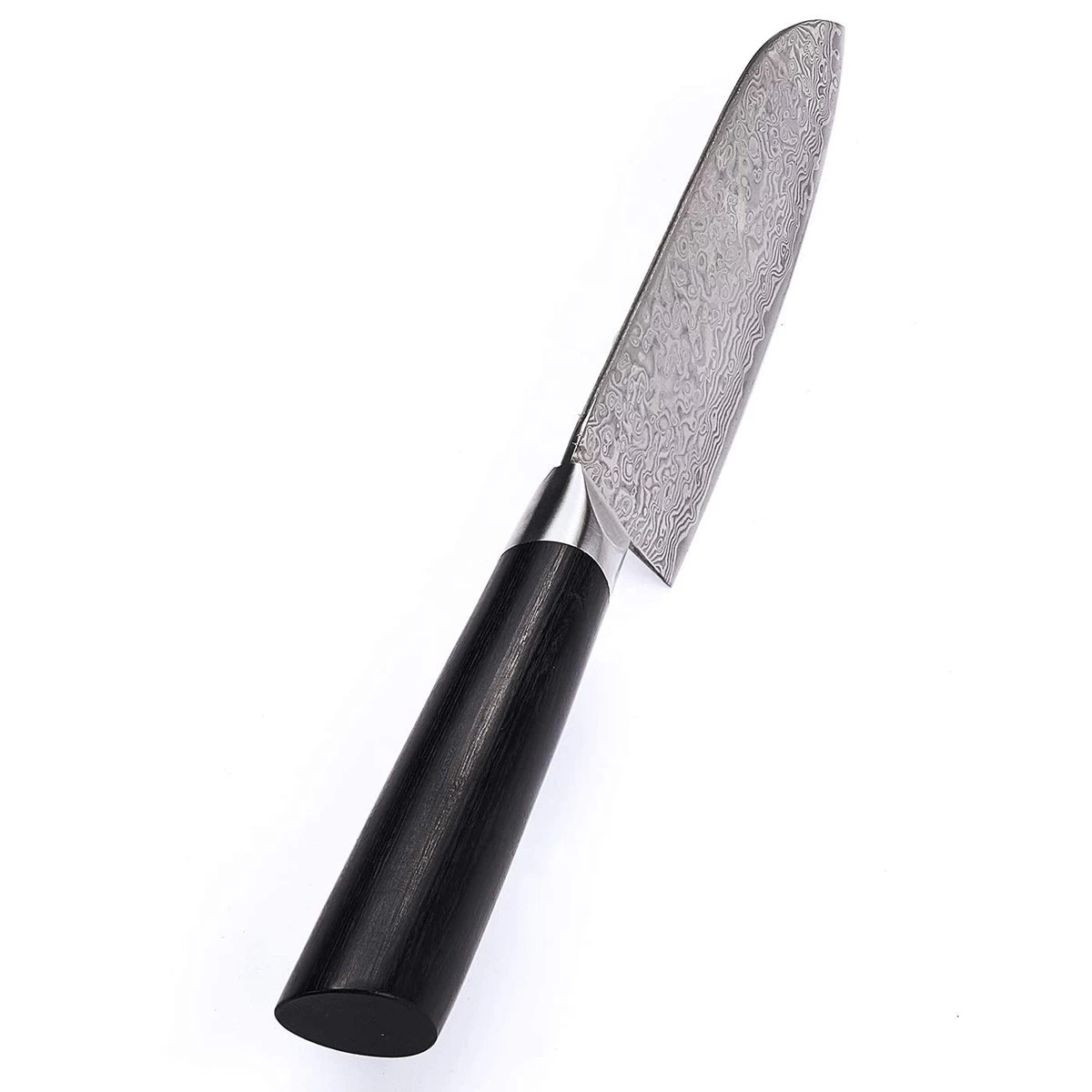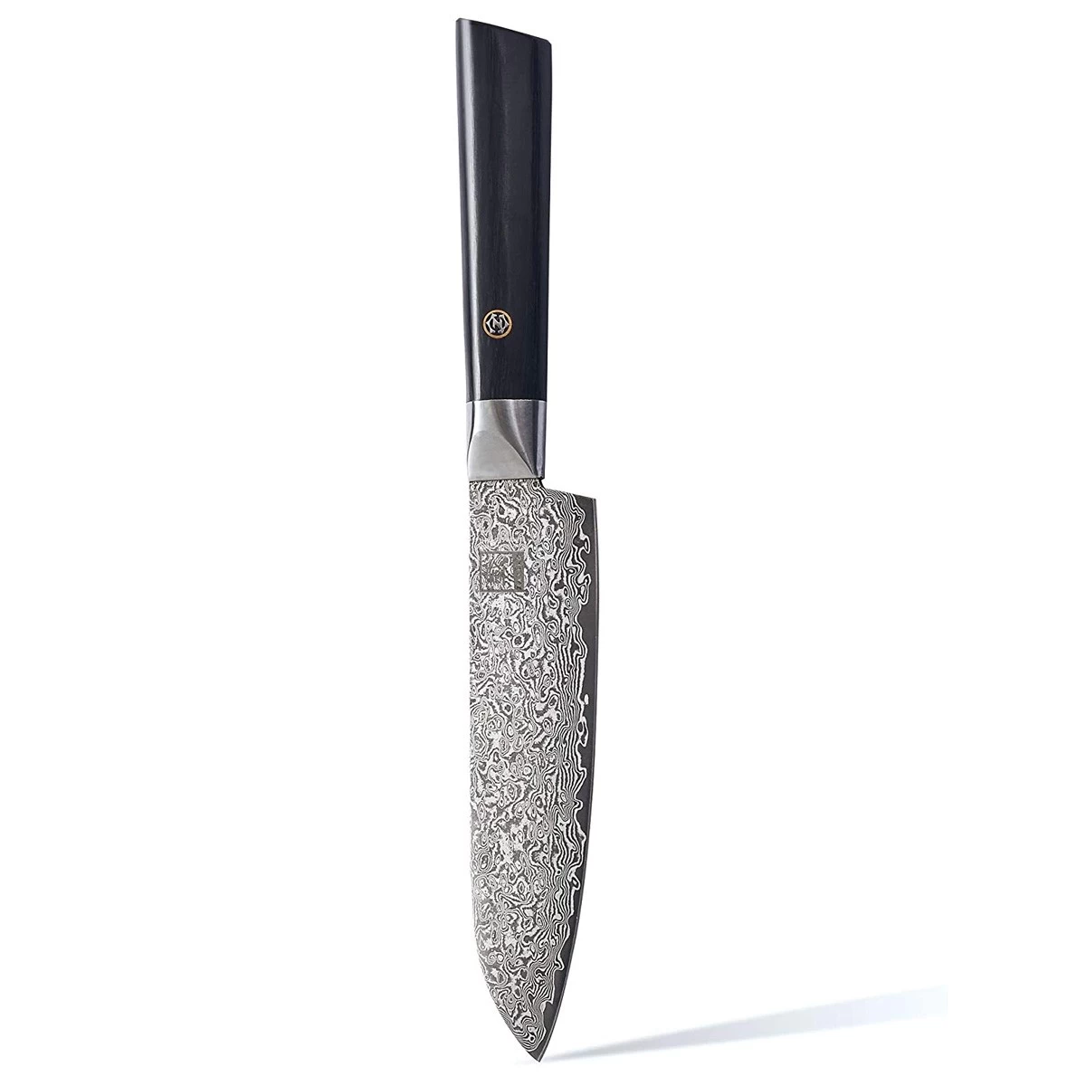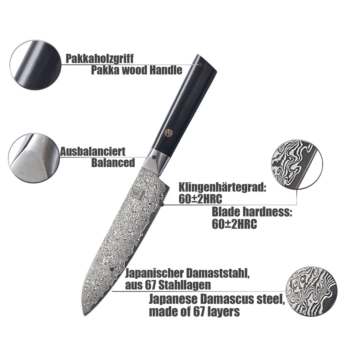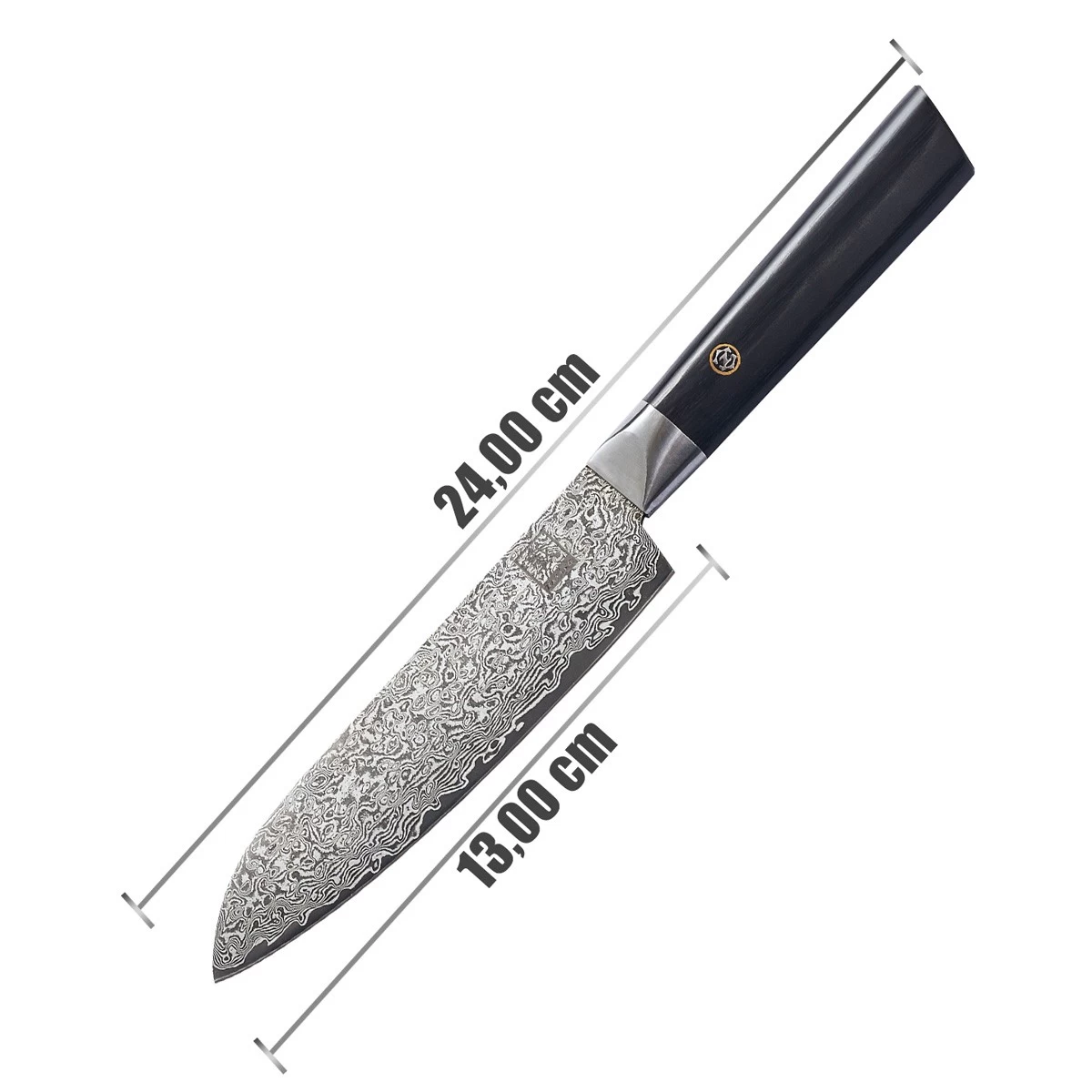 ZAYIKO Damastmesser BLACK EDITION „kleines Santokumesser“ – Pakkaholz – VG-10 Stahlkern