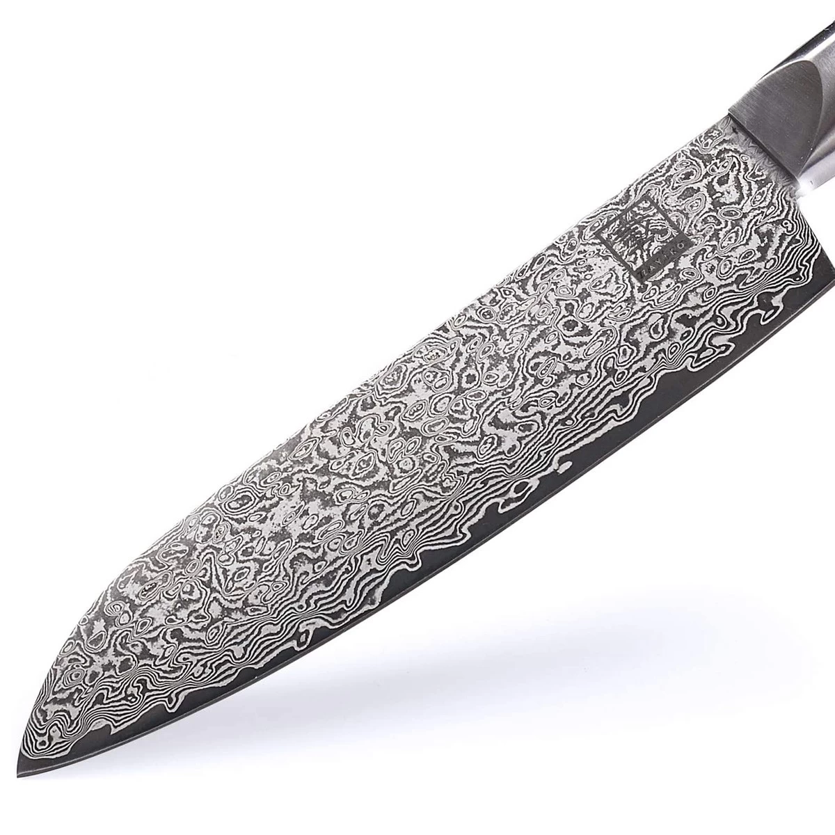 Der Kern der ZAYIKO Messer aus Damastenerstahl ist aus VG-10 Stahl mit einem Härtegrad von 60 (+/-2 HRC).