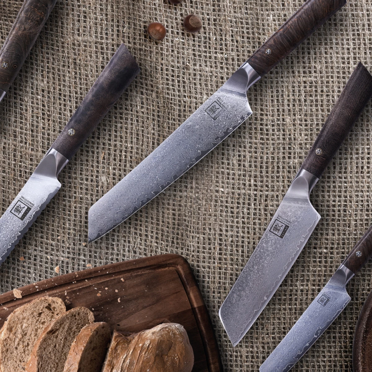 Die Serie DAITO PROFI LINE ist ein Kochmesser mit Griff aus dunklem Ahornholz und 67-lagigem, japanischem Stahl