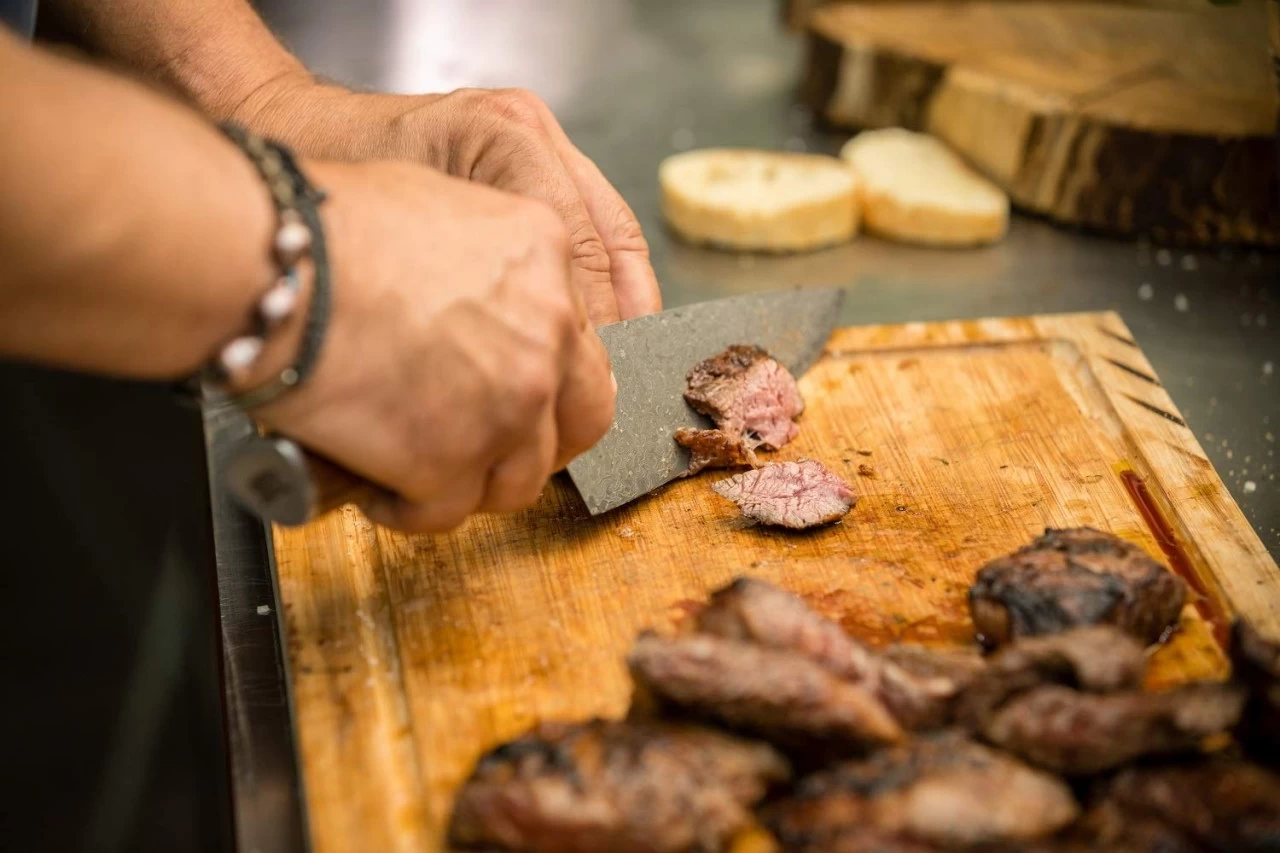 - Bitte schneide keine harten Materialien wie Knochen, oder gefrorene Lebensmittel. Damaststahl ist härter als Walzstahl und somit auf bruchempfindlicher